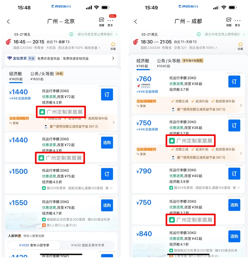 3、筛选带有「广州定制家居展」标签的运价,一键锁定展会专享优惠。