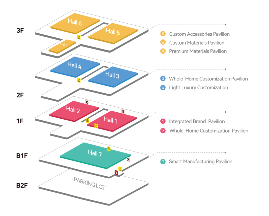 • Custom Home Furnishing Halls (Hall 1–4):