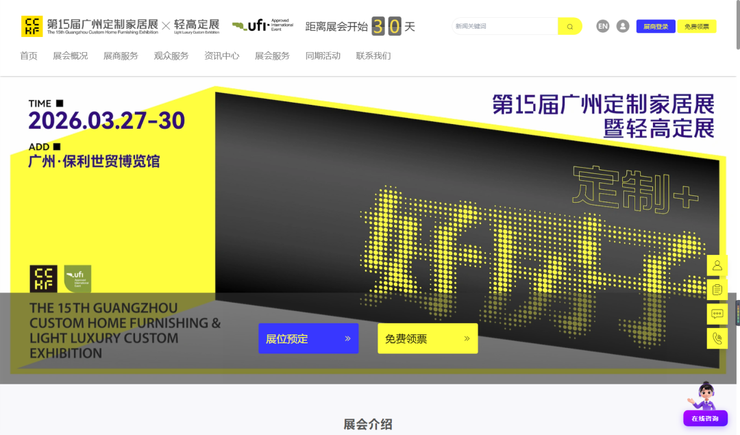 定制家居行业年度大展!第15届广州定制家居展暨轻高定展即将于3月27-30日在保利世贸博览馆盛大举行,汇聚来自全国乃至全球的知名品牌、制造商、经销商、设计师、地产商、全球专业买家等精准目标群体,预计吸引超32万+人次高质量人流。成为品牌投放广告不可多得的精准营销场景。