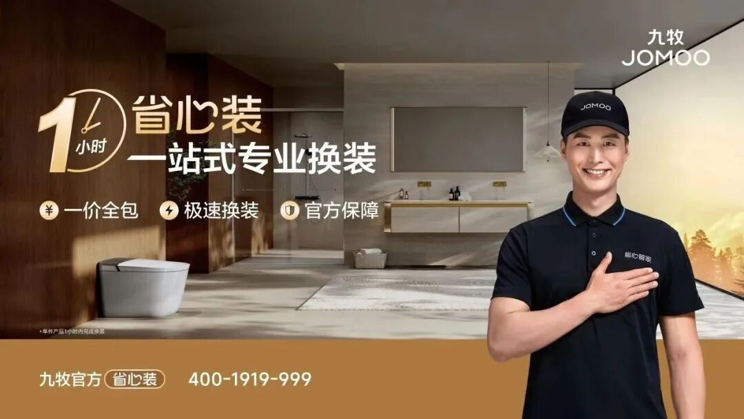 九牧深耕存量房市场,针对旧改“不动装修、快速焕新”的核心需求,推出“1小时一站式专业换装”服务,覆盖智能马桶、淋浴器、浴室柜等8大品类、62种换装场景。通过产品标准化与服务流程化,为用户解决旧改中耗时过长、价格不透明、流程繁琐、施工不专业四大痛点,并承诺“一价全包、极速换装、官方保障”。在服务端,九牧升级“省心装、省心改、省心用”三大服务模块,依托全国超4000个服务网点、1万多名专业认证服务工程师,以产业供应链企业的角色,为旧改落地提供可复制的卫浴产品与服务解决方案。