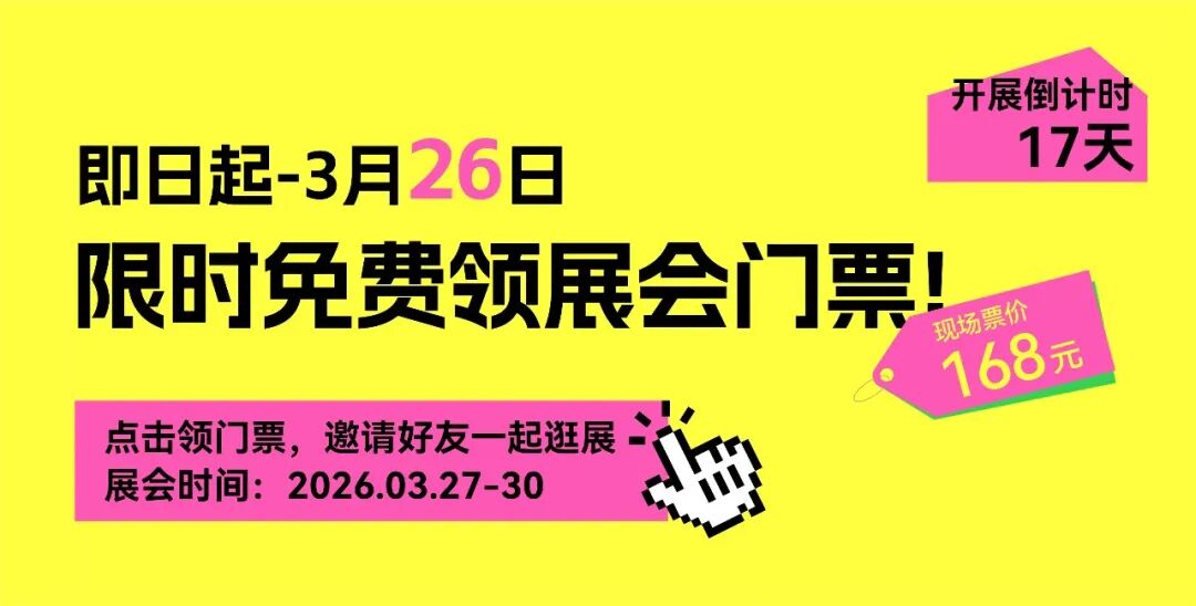 本届展会采取收费制,现场购买四天全通票 168元/张。即日起至 3月26日24时可限时0元领取门票,马上识别下方二维码登录【广州定制家居展】小程序,领取门票锁定入场券。