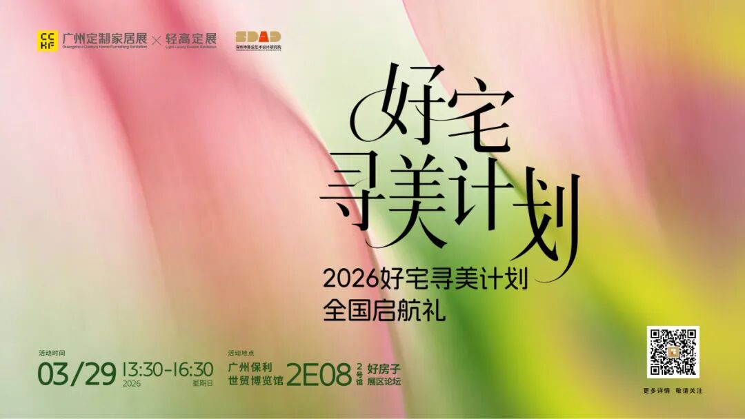 2026年3月29日,依托广州定制家居展行业标杆平台,由广州定制家居展主办、深圳市陈设艺术设计研究院联合主办的「2026好宅寻美计划全国启航礼」,将在广州保利世贸博览馆盛大启幕!这不仅是一场行业盛典的官宣,更是「好宅寻美计划」全国征程的正式开篇 —— 从理念到实践,从广州到全国,我们以 “寻定制之美,筑理想好宅” 为初心,打破行业固有认知,搭建优质资源平台,让理想好宅的模样,落地在中国每一座城市的人居生活里。