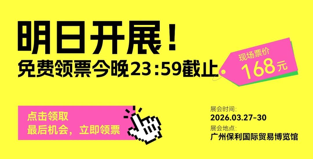 本届展会采取收费制,现场购买四天全通票 168元/张。即日起至 3月26日24时可限时0元领取门票,领取门票锁定入场券。