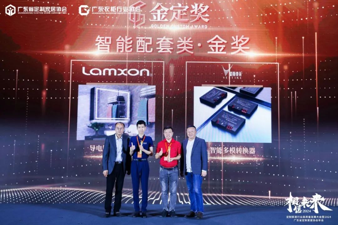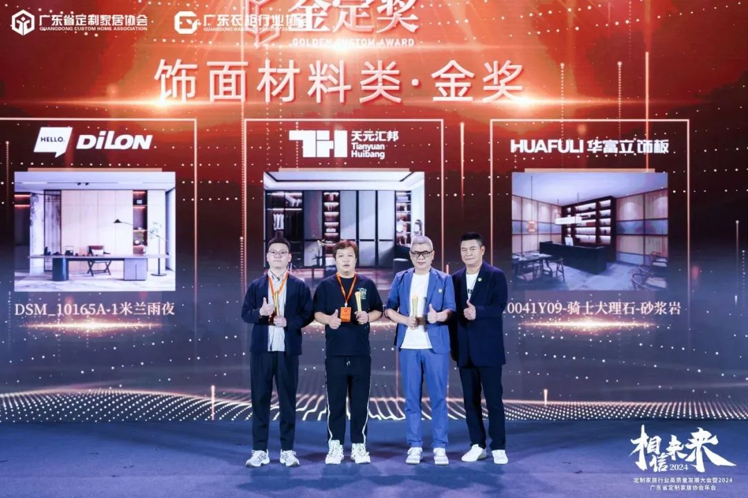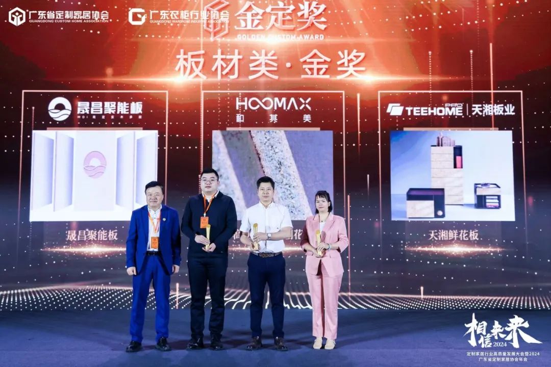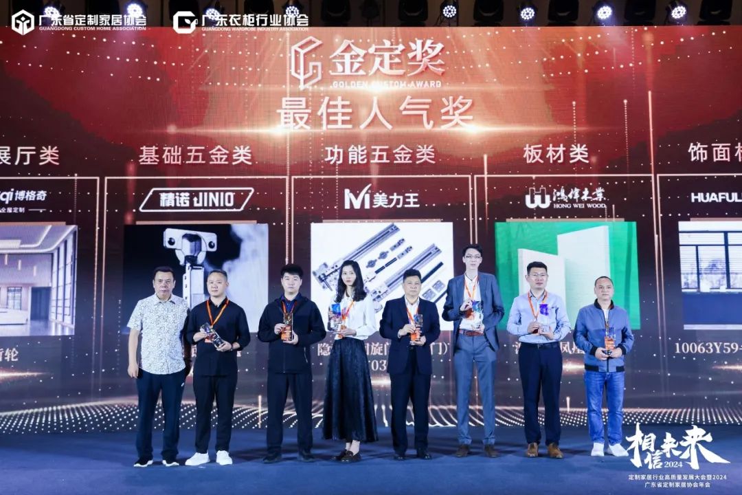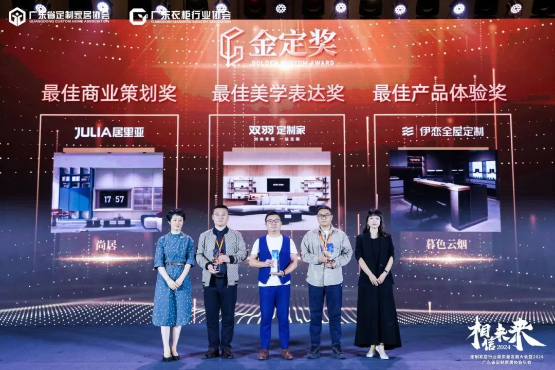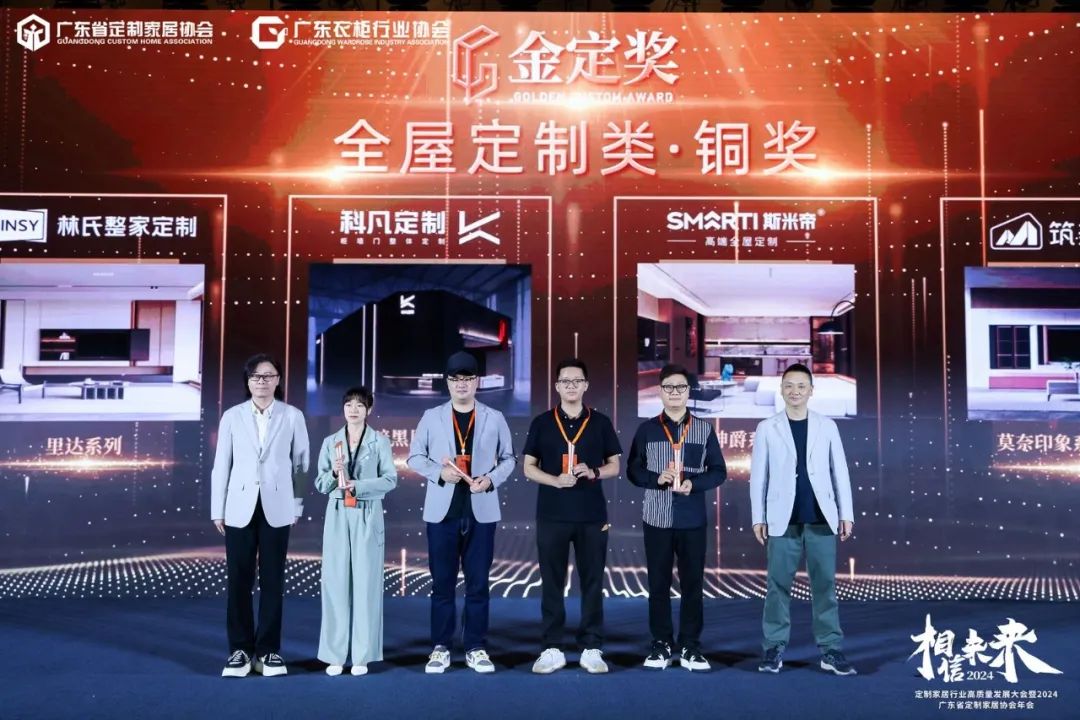 3月30日,定制家居行业高质量发展大会暨广东省定制家居协会年会及金定奖2023-2024年度颁奖典礼在广州朗豪酒店隆重举行,600+行业大腕云集,400+主流企业齐聚,共同揭晓本年度金定奖最终获奖名单,为获奖企业进行了荣誉授奖。