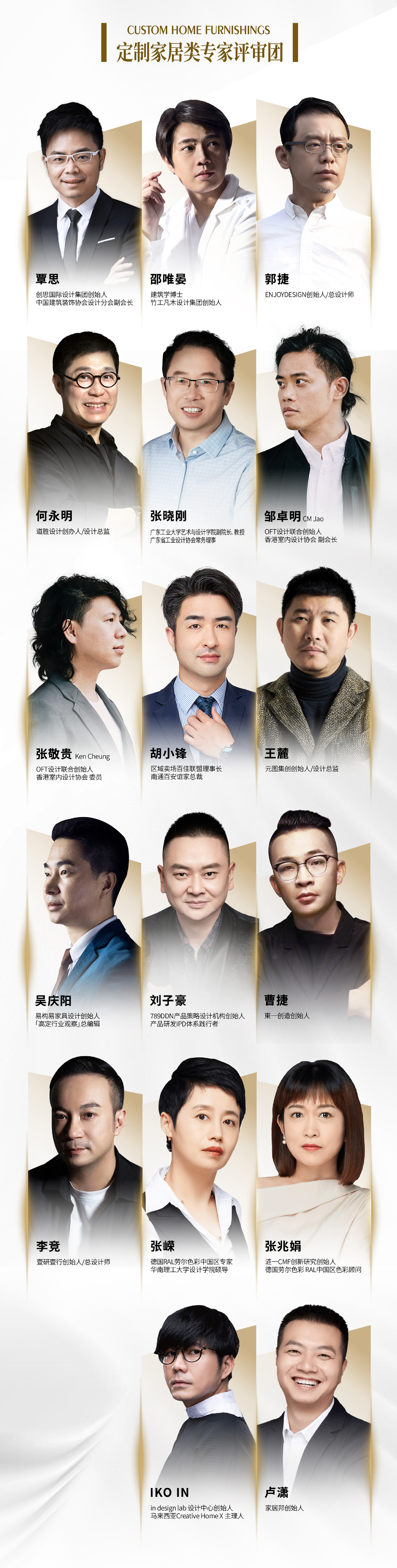 我们邀请了国内外资深设计师、定制家居企业创始人及高管、相关领域专家、媒体人等组成强大的评审团,他们以国际视野和专业素养,保证评选结果的专业性、权威性。