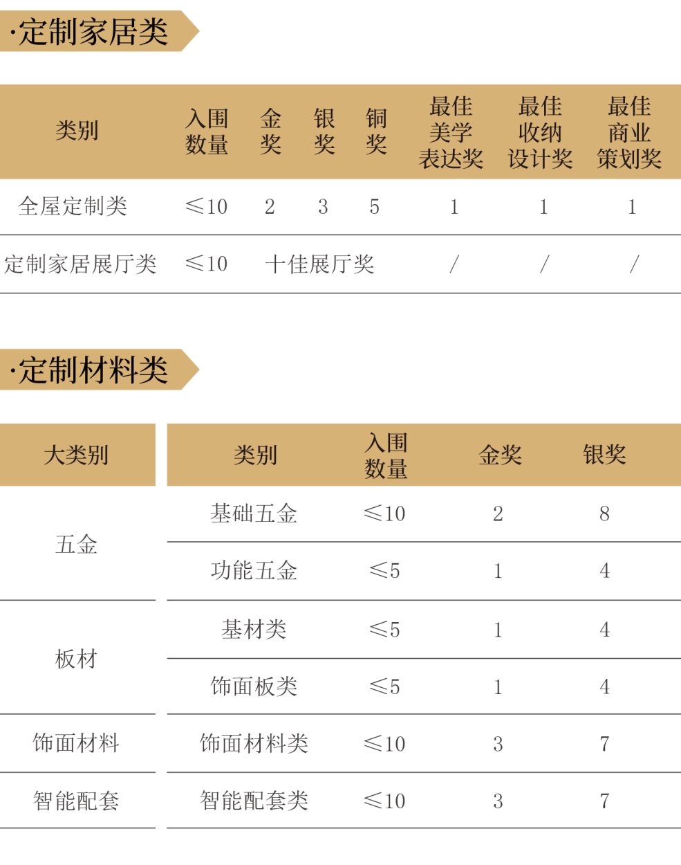 鉴于“全屋定制类”奖项终评需依据实物产品进行多维度的线下评审打分,该类别仅面向第14届中国定制家居展暨轻高定展的参展企业。